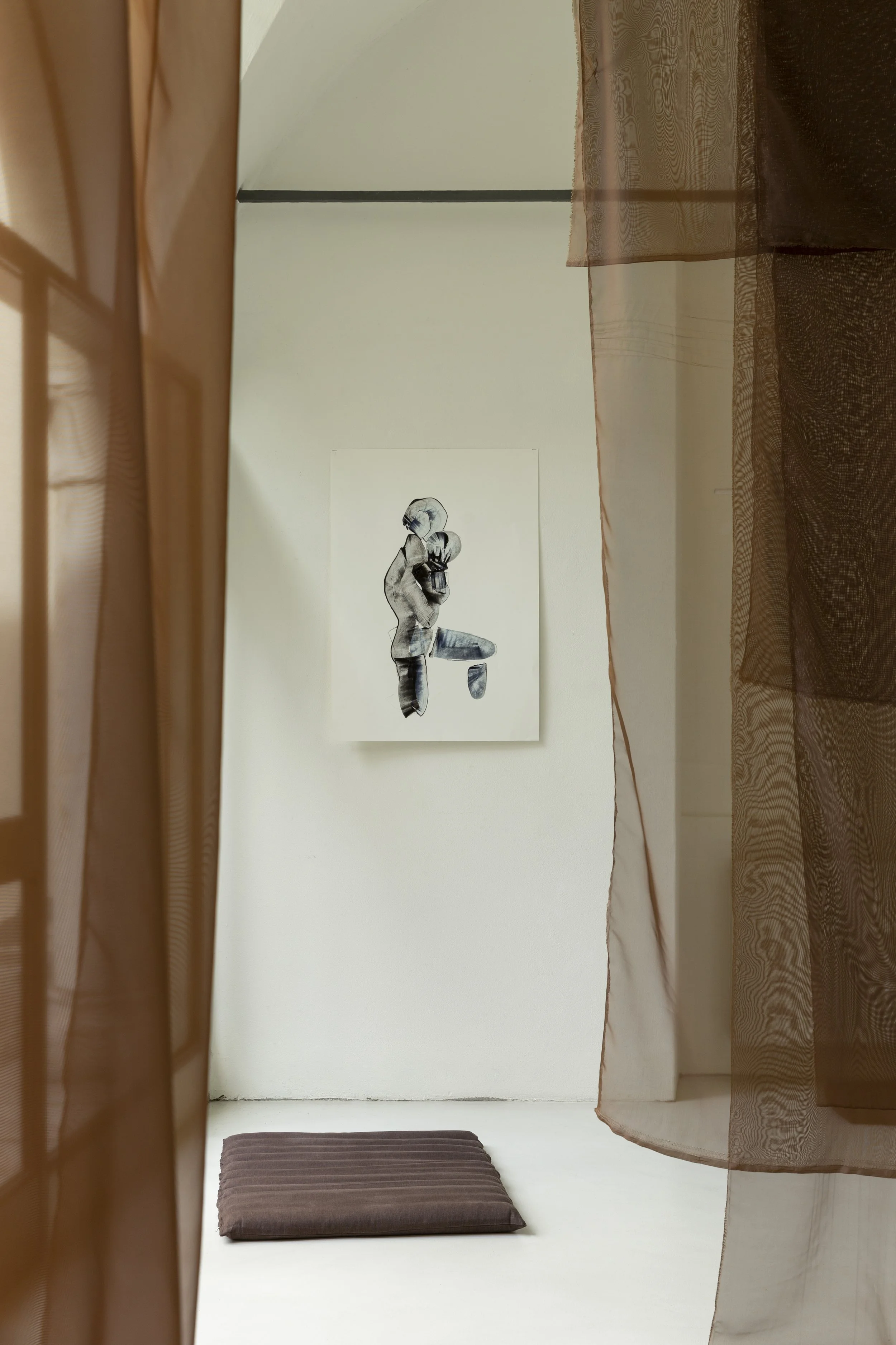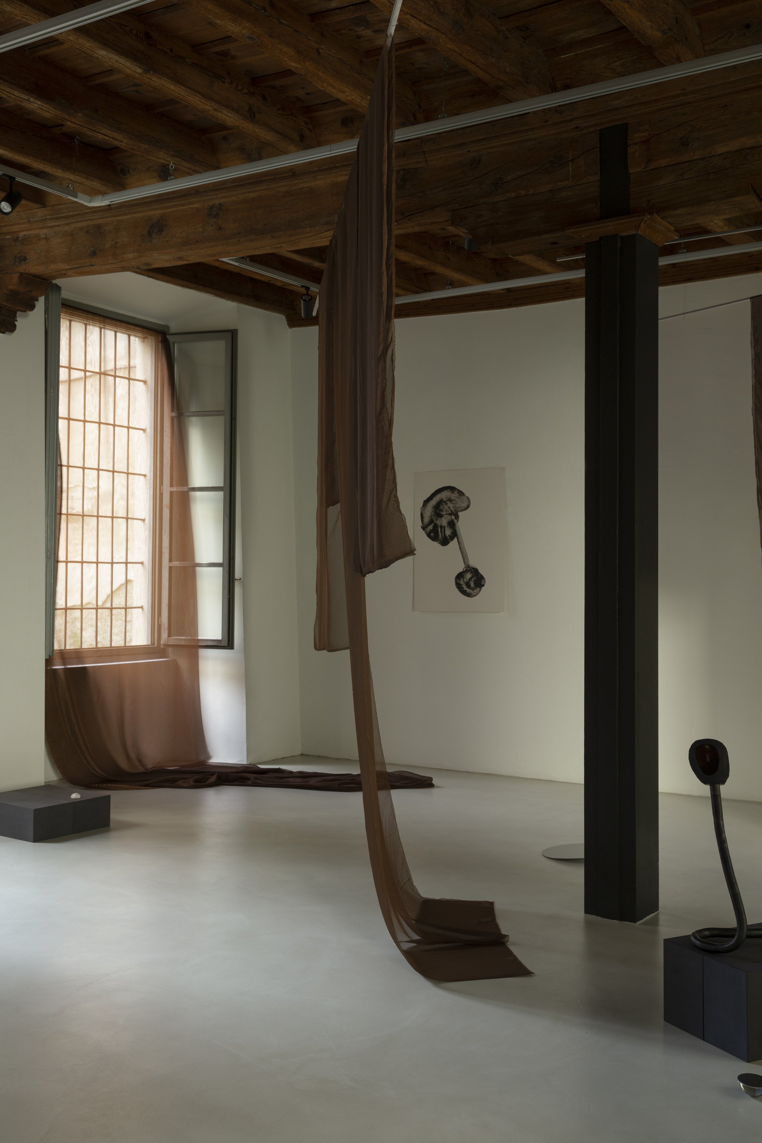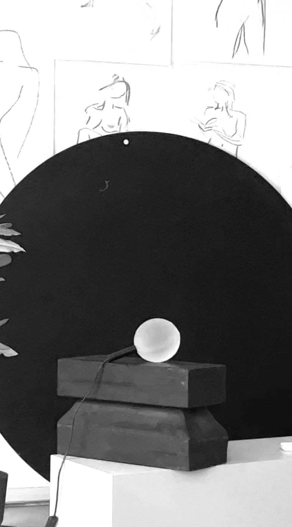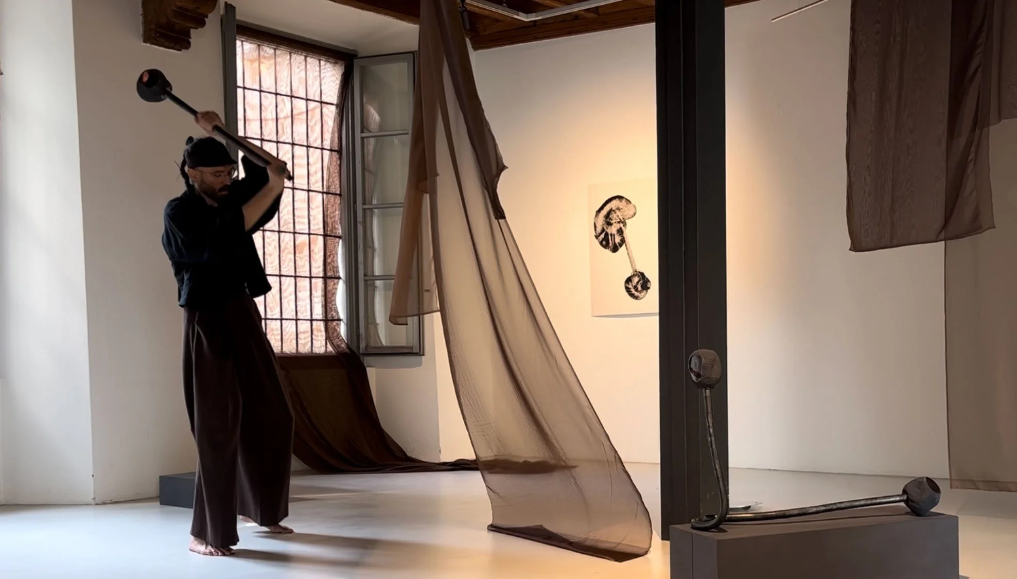 The exhibition is a journey of transformation, moving from darkness to lightness, symbolizing the mental clarity achieved through meditation. As part of this performance, artist will be living in the space for eight days, meditating and interacting with the two sets of lamps designed as both art and functional weights.