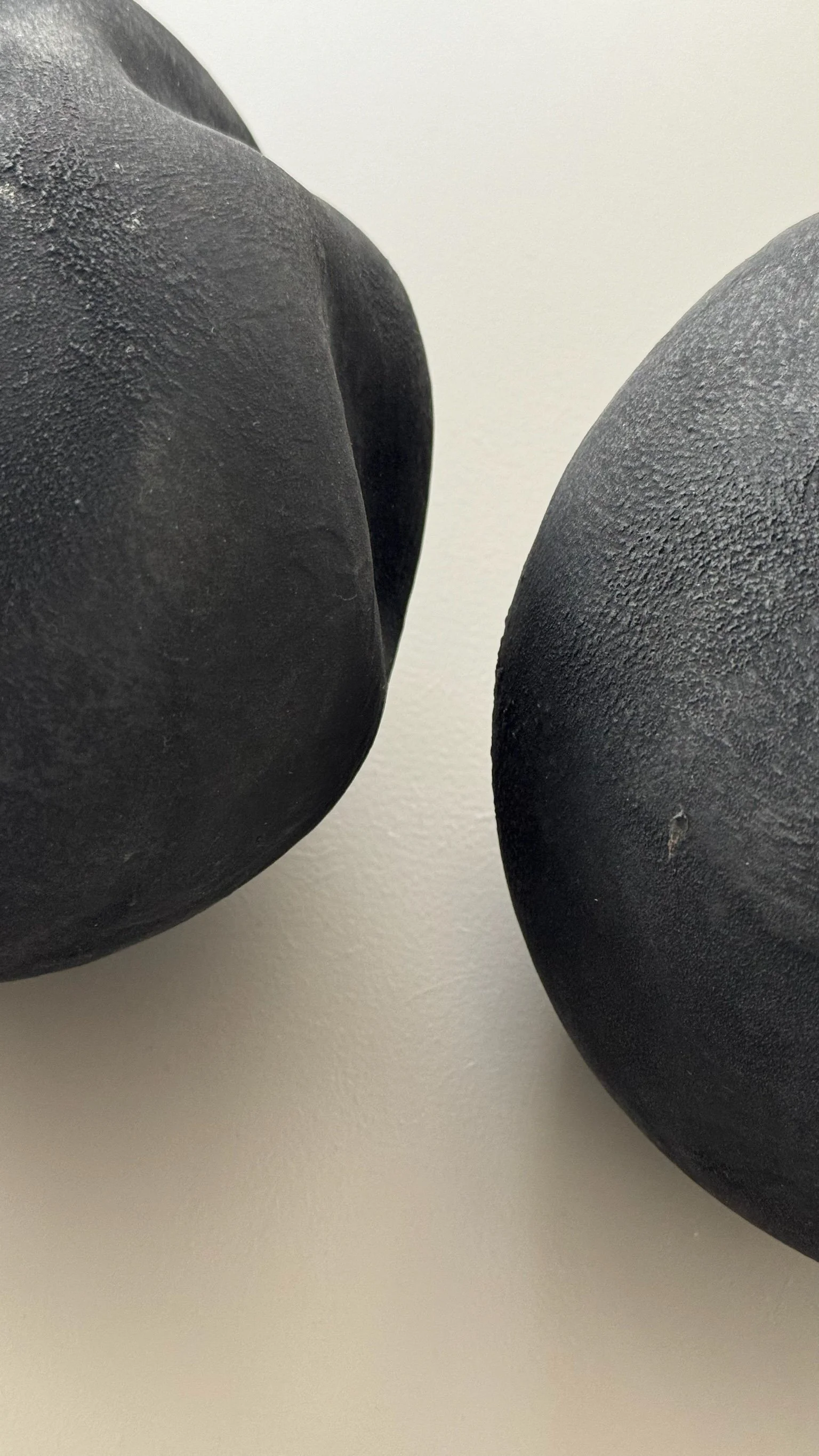 Presently, I am engaged in a 10-day meditative body/art performance in my studio at Riga, Skolas 2. This phase of exploration focuses on the integration of movement and artistic expression to cultivate a sense of lightness, strength, and energy within the body. Collaborating with artist BAI BAI, we have begun experimenting with glass objects that serve as integral components of the performance, including dark-oxidized glass weights and sand-casted glass lamps.